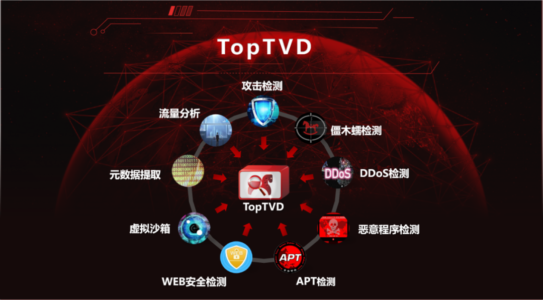 TopTVD²úÆ·¼¯¹¥»÷¼ì²â¡¢½©Ä¾Èä¼ì²â¡¢DDoS¼ì²â¡¢¶ñÒâ³ÌÐò¼ì²â¡¢APT¼ì²â¡¢WEBÇå¾²¼ì²â¡¢ÐéÄâɳÏä¡¢ÔªÊý¾ÝÌáÈ¡¡¢Á÷Á¿ÆÊÎö¾Å´ó¹¦Ð§ÓÚÒ»Ì壬£¬£¬£¬£¬£¬Ê×´´Ó¦ÓÃTAI-1ÖÇ»ÛÒýÇæ+ÐéÄâɳÏäÊÖÒÕ£¬£¬£¬£¬£¬£¬ÍŽáǶÈëʽÍþвÇ鱨¿âʵÏÖÁ˶àÖÖÍþвÖÜÈ«¼ì²â£¬£¬£¬£¬£¬£¬ÓÐÓÃʵÏÖ¶ÔÍøÂçÍþвÖÜÈ«¶àάµÄ¼ì²âЧ¹û¡£¡£¡£¡£¡£ÏÖÔÚÒÑÔÚÕþ¸®¡¢ÔËÓªÉÌ¡¢ÄÜÔ´¡¢½ðÈڵȴóÁ÷Á¿ÖØ´óÇéÐÎÖб»ÆÕ±éÓ¦Óᣡ£¡£¡£¡£