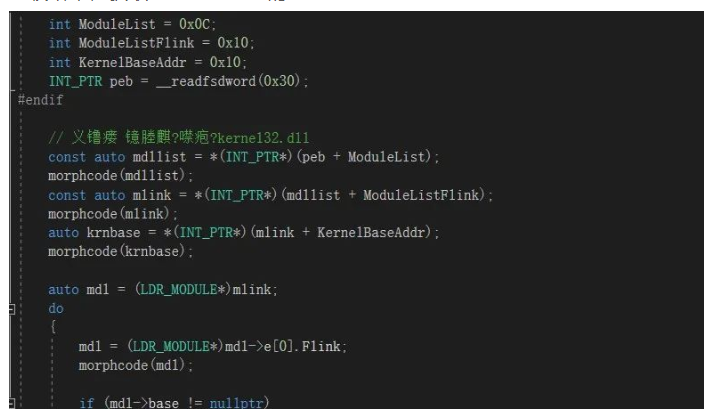 ÔÚ32λϵͳÖÐʹÓÃFS¼Ä´æÆ÷»ñÈ¡µ½PEBµØÖ·ºó£¬£¬£¬£¬£¬£¬£¬£¬Í¨¹ý±éÀúÄں˽ṹÌåµÄÁ´±í²¢½ÏÁ¿¹þÏ£Öµ»ñÈ¡kernel32.dllµÄ»ùµØÖ·¡£¡£¡£¡£¡£¡£