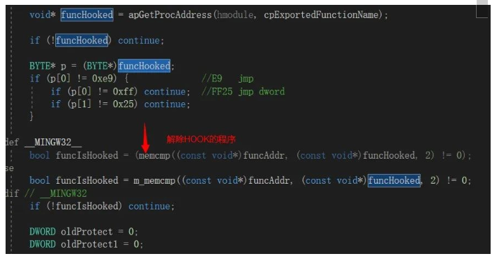 ͨ¹ý±éÀúµ¼³ö±íÀ´»ñÈ¡º¯ÊýµÄµØÖ·£¬£¬£¬£¬£¬£¬£¬£¬ÅжϻñÈ¡µ½µÄµØÖ·µÄOPCODE·´»ã±àÊÇ·ñΪjmp»ã±àÖ¸Á£¬£¬£¬£¬£¬£¬£¬ÈôÊDZ»HOOK×îÖÕͨ¹ýCopyMemoryº¯ÊýÐÞ¸´±»HOOKµÄº¯ÊýµØÖ·¡£¡£¡£¡£¡£¡£
