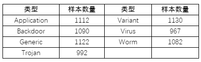 ±¾½Úͨ¹ýʵÑéÑéÖ¤Á½ÖÖ»ùÓÚ´úÂëÓïÒåÄ£×ÓµÄͬԴÆÊÎöÒªÁì¡£¡£ ¡£¡£¡£¡£¡£ÊµÑéËùÓÃÑùԭȪԴÓÚÍøÂ磬£¬£¬£¬£¬°üÀ¨Application¡¢Backdoor¡¢Generic¡¢Trojan¡¢Variant¡¢Virus¼°WormµÈÖֱ𣨱í1£©¡£¡£ ¡£¡£¡£¡£¡£
