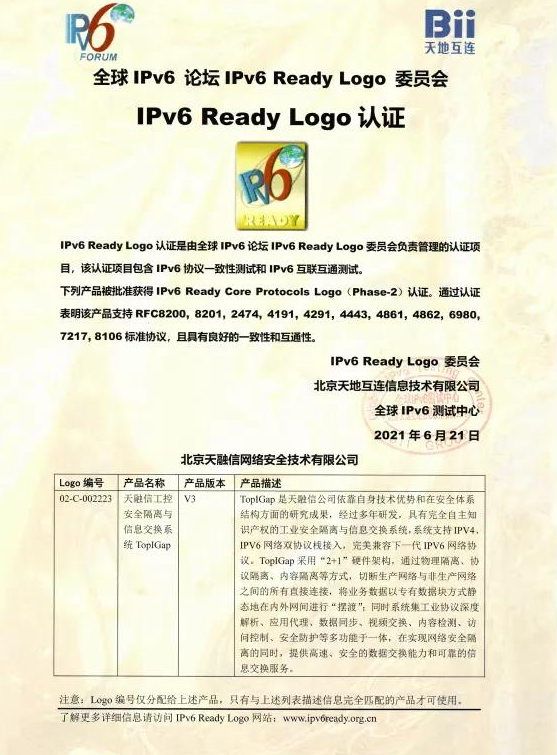 ¿ËÈÕ£¬£¬£¬ £¬£¬£¬£¬3377ÌåÓýÍø¹ÙÍøÈë¿Ú¹¤¿ØÇå¾²¸ôÀëÓëÐÅÏ¢½»Á÷ϵͳ£¨TopIGap£©È¡µÃIPv6 Ready LogoÈÏÖ¤Ö¤Ê飬£¬£¬ £¬£¬£¬£¬±êʶ±àºÅ£º02-C-002223£¬£¬£¬ £¬£¬£¬£¬ÊǺ£ÄÚ¹¤Òµ»¥ÁªÍøÇå¾²ÁìÓòÊ׿îͨ¹ýIPv6 Ready LogoÈÏÖ¤µÄ¹¤ÒµÍøÕ¢²úÆ·¡£¡£¡£¡£¡£
