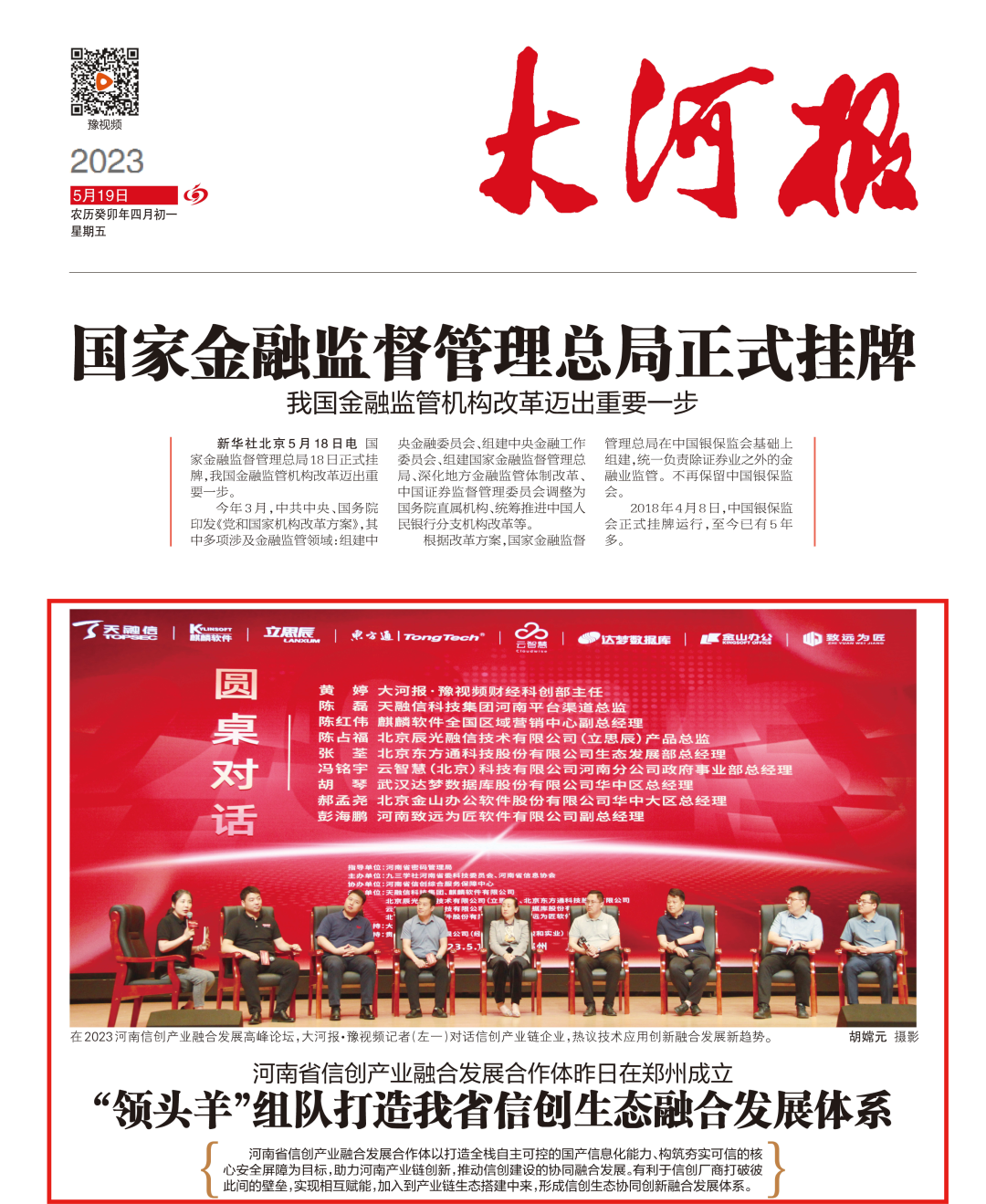 ±¾ÎÄ¿¯µÇÓÚ2023Äê5ÔÂ19ÈÕ´óºÓ±¨Í·°æºÍA02°æ