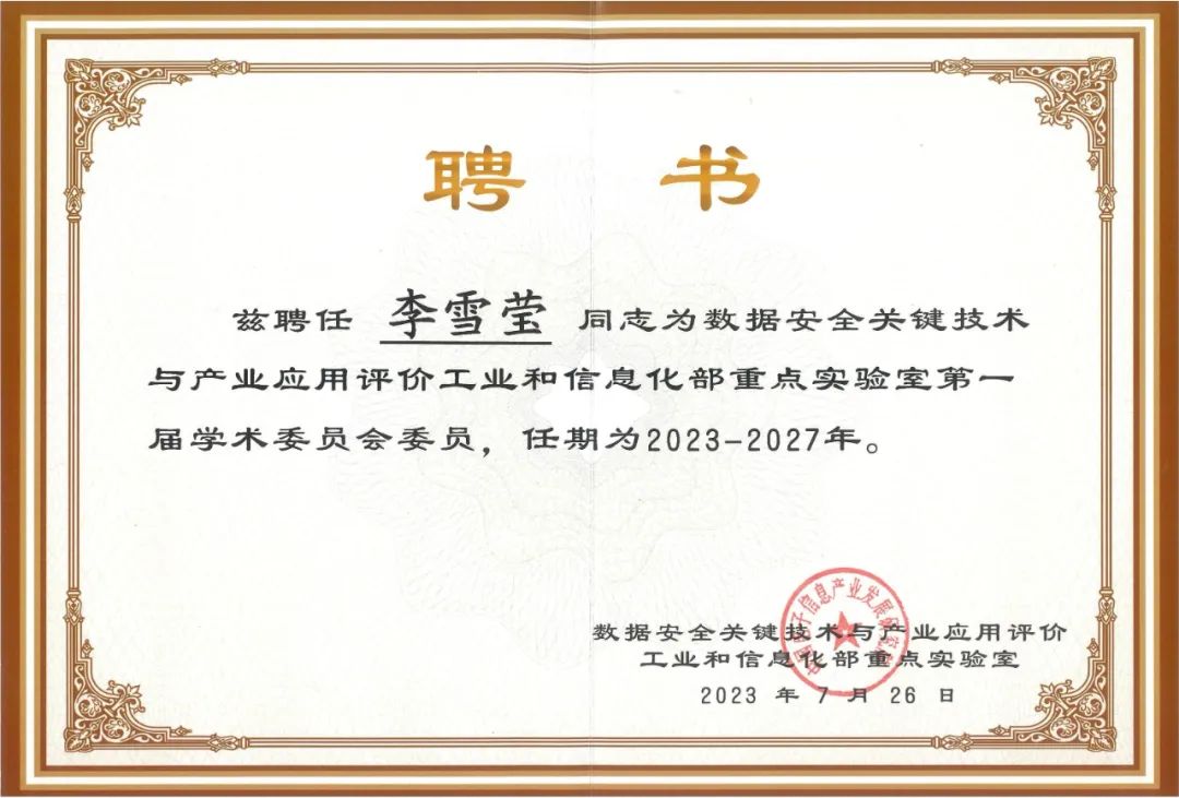 3377ÌåÓýÍø¹ÙÍøÈë¿ÚÀîѩӨ²©Ê¿ÊÜÆ¸Êý¾ÝÇå¾²Òªº¦ÊÖÒÕÓ빤ҵӦÓÃÆÀ¼Û¹¤ÒµºÍÐÅÏ¢»¯²¿ÖصãʵÑéÊÒµÚÒ»½ìѧÊõίԱ»áίԱ