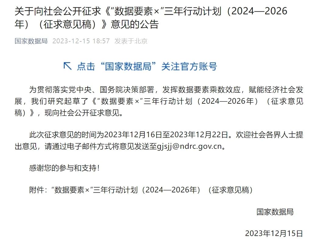 12ÔÂ15ÈÕ£¬£¬£¬£¬£¬¹ú¼ÒÊý¾Ý¾ÖÐû²¼Á˹ØÓÚ¡¶¡°Êý¾ÝÒªËØ¡Á¡±ÈýÄêÐж¯ÍýÏ루2024¡ª2026Ä꣩£¨Õ÷ÇóÒâ¼û¸å£©¡·£¨ÒÔϼò³Æ¡°ÈýÄêÐж¯ÍýÏ롱£©¹ûÕæÕ÷ÇóÒâ¼ûµÄͨ¸æ¡£¡£¡£¡£¡£¡£¡£ÕâÊÇÊ׸öÕë¶ÔÊý¾ÝÒªËØÁìÓò£¬£¬£¬£¬£¬¿çÐÐÒµ¡¢¿çÁìÓò£¬£¬£¬£¬£¬Ö¼ÔÚ¼¤»îÊý¾ÝÒªËØ¡°³ËÊýЧӦ¡±µÄÐж¯ÍýÏë¡£¡£¡£¡£¡£¡£¡£Æä½¹µãÄ¿µÄÖ¼ÔÚͨ¹ýÍÆ¶¯Êý¾Ý×ÊÔ´µÄ¿ª·Å¹²ÏíºÍÉúÒâÁ÷ͨ£¬£¬£¬£¬£¬ÒÔ¼°Ö§³ÖÖÖÖÖı»®Ö÷ÌåÇ¿»¯Êý¾Ý¿ª·¢Ê¹Ó㬣¬£¬£¬£¬À´ÅàÓý¾ßÓÐÖйúÌØÉ«µÄÊý¾Ý²úÆ·ºÍÆ·ÅÆ¡£¡£¡£¡£¡£¡£¡£