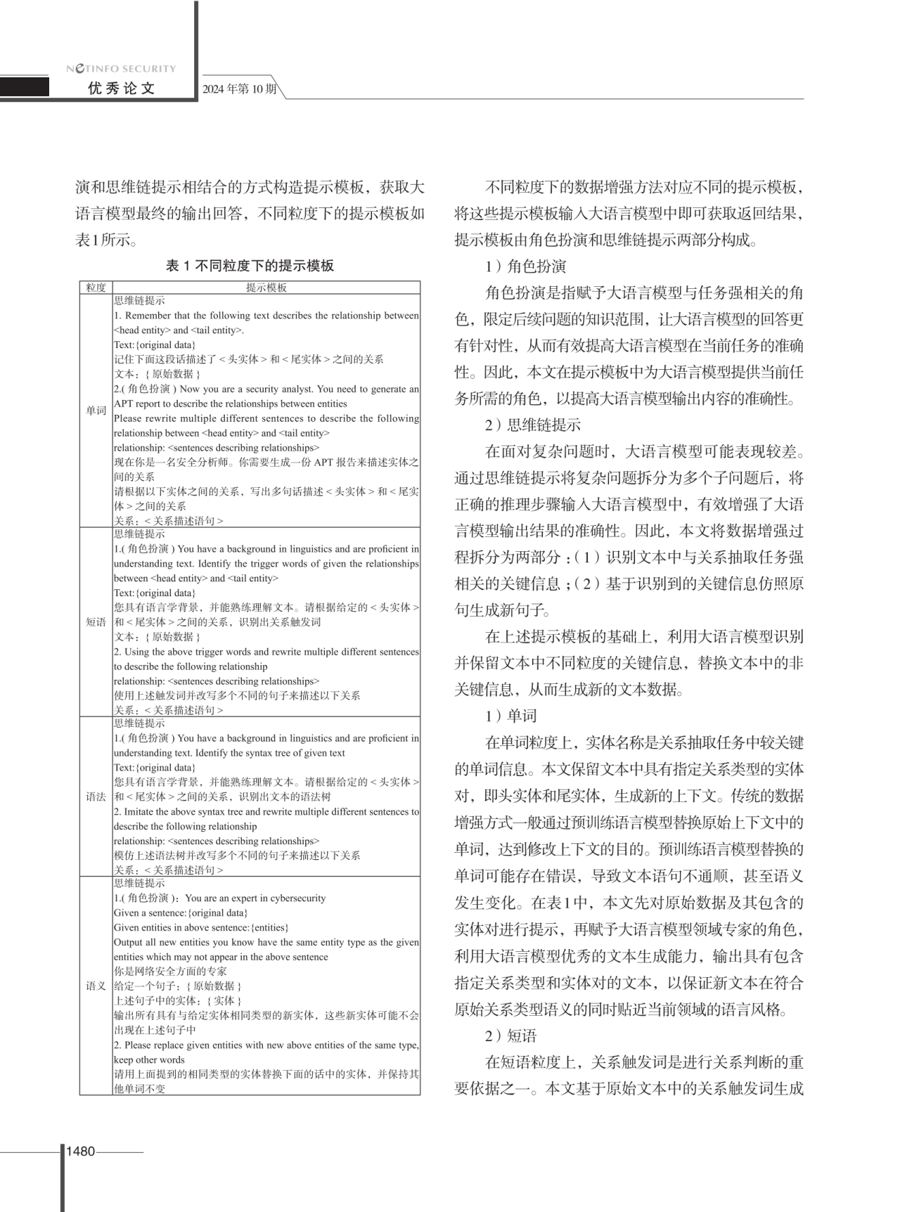 该要领首先基于贪心算法的基本头脑,,,,,,从原始标注数据集中选择最具代表性的数据举行增强,,,,,,以提高运行效率。。。。。。。。然后,,,,,,从单词、短语、语法和语义四个粒度对采样数据举行转化,,,,,,确保天生的新数据在切合原始训练数据语义要求的同时,,,,,,具备更高的多样性,,,,,,从而提升后续模子训练的有用性。。。。。。。。为了提高峻型语言模子天生文本的准确性,,,,,,我们接纳角色饰演和头脑链提醒相团结的方法结构提醒模板,,,,,,以获取高质量的输出。。。。。。。。实验效果批注,,,,,,文章所提数据增强要领有用改善了网络清静关系抽取使命上的有用性以及天生数据的多样性。。。。。。。。