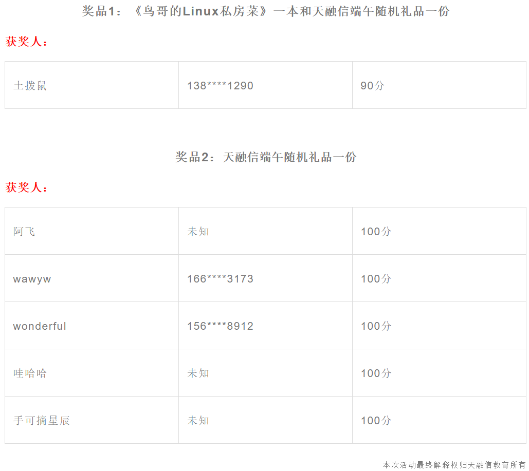 ¡¶ÍøÂçÇå¾²·¨¡·Ê©ÐÐÖÜΧÄêôß3377ÌåÓýÍø¹ÙÍøÈë¿ÚµÚ¶þ½ìÍøÂçÇ徲֪ʶ¾ºÈü»ñ½±Ãûµ¥ÒÑÅÌ»õÍê±Ï£¬£¬£¬£¬£¬¹§Ï²»ñ½±Õߣ¡¾ºÈüµÚһλµÃ·Ö¡Ý90·Ö£¬£¬£¬£¬£¬»ñÔù¡¶Äñ¸çµÄLinux˽·¿²Ë¡·Ò»±¾ºÍ3377ÌåÓýÍø¹ÙÍøÈë¿Ú¶ËÎçËæ»úÀñÎïÒ»·Ý£»£»£»£»£»×Ü·ÖÅÅÃûǰÎåλÔù3377ÌåÓýÍø¹ÙÍøÈë¿Ú¶ËÎç½ÚËæ»úÀñÎïÒ»·Ý£¨·ÖÊýÏàͬÕߣ¬£¬£¬£¬£¬°´¼ÓÈëÔ˶¯µÄʱ¼äÏȺó˳Ðò¾ÙÐÐÅÅÃû£©¡£¡£¡£¡£¡£