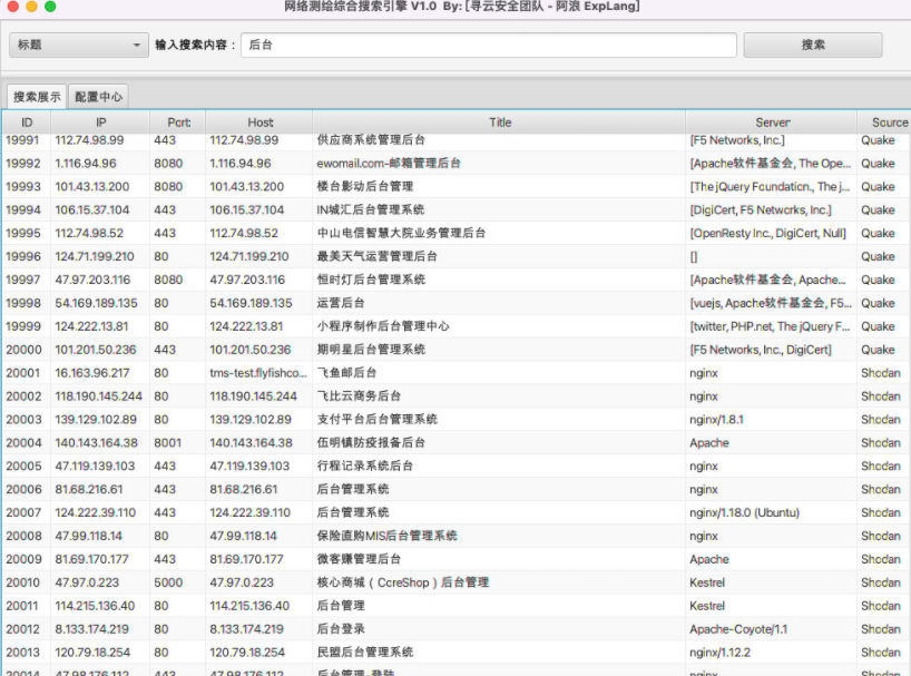 ΪÁËÀû±ãÇå¾²´ÓÒµÖ°Ô±ÔÚʹÓÃÍøÂç²â»æÆ½Ì¨¾ÙÐÐÐÅÏ¢ËѼ¯Ê±µÄЧÂÊ£¬£¬£¬£¬£¬±¾³ÌÐòÜöÝÍÁ˶à¸öÍøÂç²â»æÆ½Ì¨£¬£¬£¬£¬£¬¿ÉÒÔ¿ìËÙÔÚ¶à¸öÍøÂç²â»æÆ½Ì¨ËÑË÷ÐÅÏ¢²¢ÇҺϲ¢Õ¹Ê¾¼°µ¼³ö¡£¡£¡£¡£¡£¡£¡£¡£