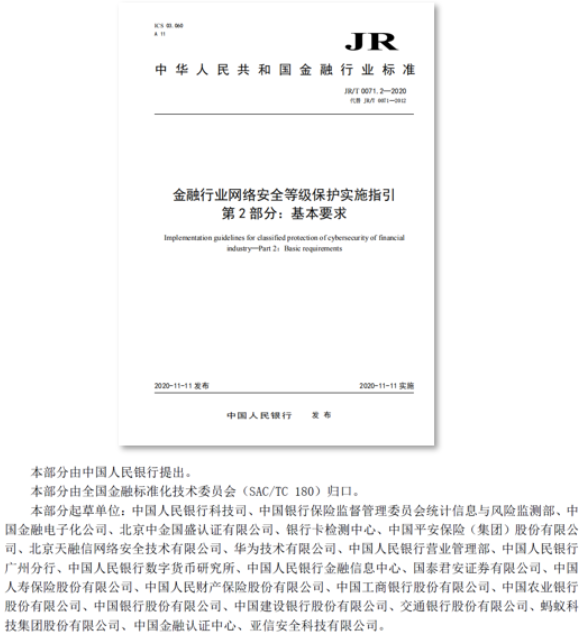¡¶½ðÈÚÐÐÒµÍøÂçÇ徲Ʒ¼¶±£»£»£»£»£»£»£»£»¤ÊµÑéÖ¸Òý¡·£¨JR/T0071-2020£©¹æ·¶Á˽ðÈÚÐÐÒµÍøÂçÇå¾²°ü¹Ü¿ò¼ÜºÍ²î±ðÇ徲Ʒ¼¶¶ÔÓ¦µÄÇå¾²ÒªÇ󣬣¬£¬£¬£¬£¬£¬£¬²¢¶Ô´óÊý¾ÝÇå¾²Ìá³öÁËÃ÷È·ÒªÇ󡣡£¡£¡£¡£¡£¡£±¾±ê×¼µÄÐû²¼ÓÐÖúÓÚ½ðÈÚÐÐÒµÍøÂçÇ徲Ʒ¼¶±£»£»£»£»£»£»£»£»¤ÊÂÇéµÄ¿ªÕ¹£¬£¬£¬£¬£¬£¬£¬£¬Îª½ðÈÚÐÐÒµµÄÍøÂçÇå¾²½¨ÉèÌṩҪÁìÂÛ¡¢ÏêϸµÄ½¨Éè²½·¥¼°ÊÖÒÕÖ¸µ¼£¬£¬£¬£¬£¬£¬£¬£¬ÖÜÈ«ÌáÉý½ðÈÚÏµÍ³ÍøÂçÇå¾²ÕûÌå·À»¤Ë®Æ½¡£¡£¡£¡£¡£¡£¡£