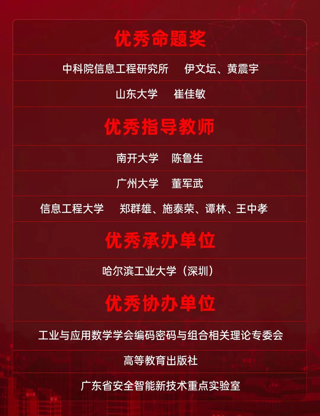 ½ÌÓý²¿¸ßµÈѧУÊýѧÀàרҵ½Ìѧָµ¼Î¯Ô±»áÖ÷ÈΡ¢Öйú¿ÆÑ§ÔºÔºÊ¿Ö£Ö¾Ã÷£¬£¬£¬£¬£¬£¬3377ÌåÓýÍø¹ÙÍøÈë¿Ú¶Ê³¤¼æCEOÀîѩӨ£¬£¬£¬£¬£¬£¬¹þ¶û±õ¹¤Òµ´óѧ£¨ÉîÛÚ£©ÅÌËã»úѧԺ¸±Ôº³¤Â¬×ÆË¸£¬£¬£¬£¬£¬£¬Öйú¿ÆÑ§ÔºÐÅÏ¢¹¤³ÌÑо¿ËùÁÖ¶«á·Ñо¿Ô±£¬£¬£¬£¬£¬£¬½ÌÓý²¿¸ßµÈѧУÊýѧÀàרҵ½Ìѧָµ¼Î¯Ô±»á¸±Ö÷ÈΡ¢¸´µ©´óѧÎâȪˮ½ÌÊÚ£¬£¬£¬£¬£¬£¬É½¶«´óÑ§ÍøÂç¿Õ¼äÇ徲ѧԺ³£Îñ¸±Ôº³¤ÍõÃÀÇÙ½ÌÊÚ£¬£¬£¬£¬£¬£¬ÐÅÏ¢¹¤³Ì´óѧÆÝÎÄ·å½ÌÊÚ£¬£¬£¬£¬£¬£¬¹þ¶û±õ¹¤Òµ´óѧ£¨ÉîÛÚ£©ÅÌËã»úѧԺ¸±Ôº³¤ºÎµÀ¾´µÈÏòµ¼Îª»ñµÃÌØµÈ½±¡¢Ò»µÈ½±¡¢¶þµÈ½±¡¢ÈýµÈ½±¡¢×î¼ÑÏÖ³¡ÌåÏÖ½±ÒÔ¼°Îª±¾´ÎÈüÊÂÀֳɾÙÐÐ×ö³öÍ»³öТ˳µÄÍŶӺÍСÎÒ˽¼Ò°ä½±¡£¡£¡£¡£¡£¡£¡£