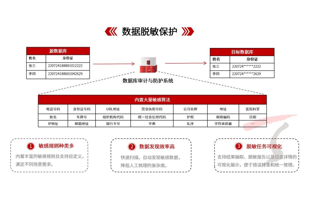 ϵͳÄÚÖøßЧÍÑÃôËã·¨£¬£¬£¬£¬£¬£¬£¬Äܽ«Ãô¸ÐÐÅϢת»»ÎªÐéÄâÊý¾Ý£¬£¬£¬£¬£¬£¬£¬ÓÐÓÃÒþ²ØÕæÊµÐÅÏ¢£¬£¬£¬£¬£¬£¬£¬ÒÔ´ËÖª×ãÆóÒµµÄºÏ¹æÐèÇ󡣡£¡£¡£¡£ÕâÒ»»úÖÆ½â¾öÁËÆóÒµÔÚϵͳ¿ª·¢²âÊÔ¡¢Êý¾ÝÆÊÎö¼°´óÊý¾ÝÓ¦Óõȳ¡¾°ÖÐÃæÁÙµÄÒþ˽Êý¾Ýй¶ÌôÕ½£¬£¬£¬£¬£¬£¬£¬È·±£ÓªÒµÔ˶¯ÔÚ±£»£»£»£»£»¤Óû§Òþ˽µÄÌõ¼þÏÂ˳Ëì¾ÙÐС£¡£¡£¡£¡£
