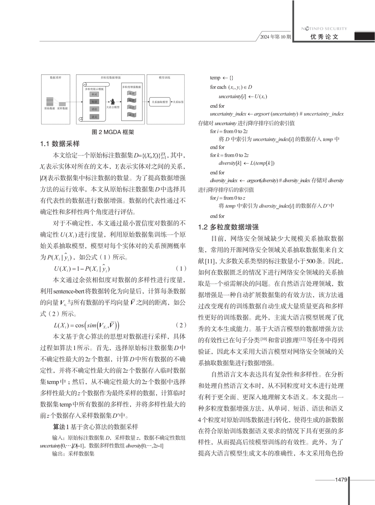 该要领首先基于贪心算法的基本头脑,,,,,,从原始标注数据集中选择最具代表性的数据举行增强,,,,,,以提高运行效率。。。。。。。。然后,,,,,,从单词、短语、语法和语义四个粒度对采样数据举行转化,,,,,,确保天生的新数据在切合原始训练数据语义要求的同时,,,,,,具备更高的多样性,,,,,,从而提升后续模子训练的有用性。。。。。。。。为了提高峻型语言模子天生文本的准确性,,,,,,我们接纳角色饰演和头脑链提醒相团结的方法结构提醒模板,,,,,,以获取高质量的输出。。。。。。。。实验效果批注,,,,,,文章所提数据增强要领有用改善了网络清静关系抽取使命上的有用性以及天生数据的多样性。。。。。。。。
